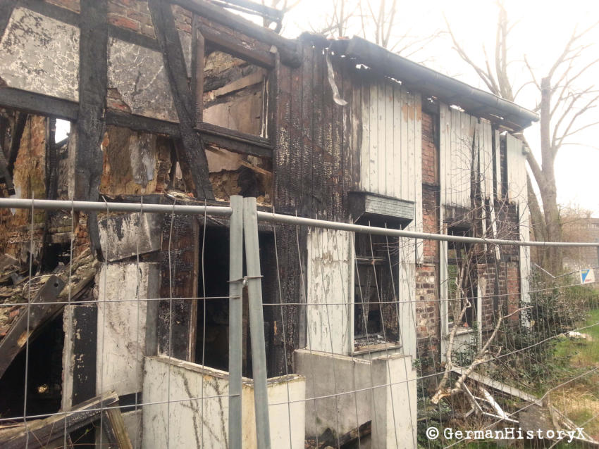 Das Haus dürfte Baujahr 1799 sein, zumindest steht das auf einer Inschrift. Mittlerweile ist das Haus leider bis auf die Grundmauern abgebrannt. Die Schreinerei Klöpper war ein gut laufendes Geschäft in GE-Heßler. In der Zeit als die Toten noch Zuhause aufgebahrt wurden, holte der Bestatter Klöpper die Toten mit einer gläsernen Kutsche, die von zwei Pferden gezogen wurde ab. Es ranken sich viele Geschichten um den Bestatter und seine Frau, was davon stimmt und was nicht kann ich nicht sagen. Mehr Infos findet ihr unter: www.gelsenkirchener- geschichten.de/viewtopic.php?t=9635Die letzten Fotos zeigen den Zustand nachdem das Wohnhaus abgebrannt ist :(