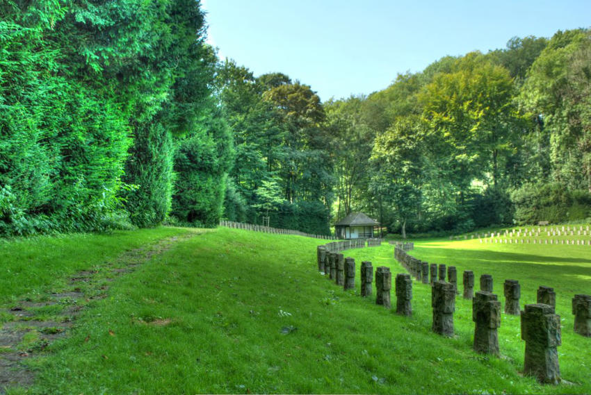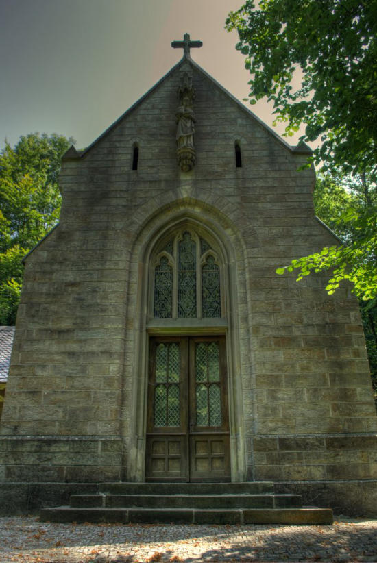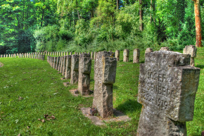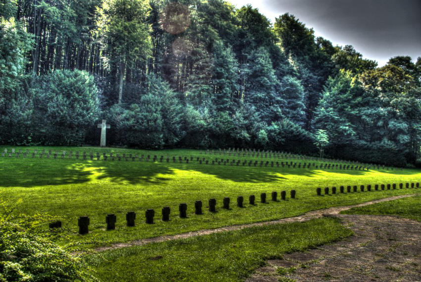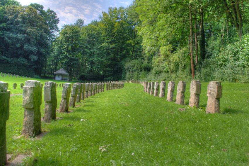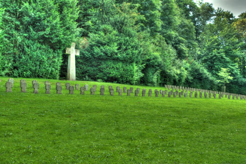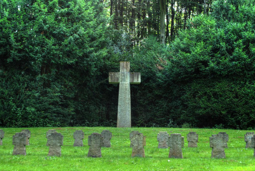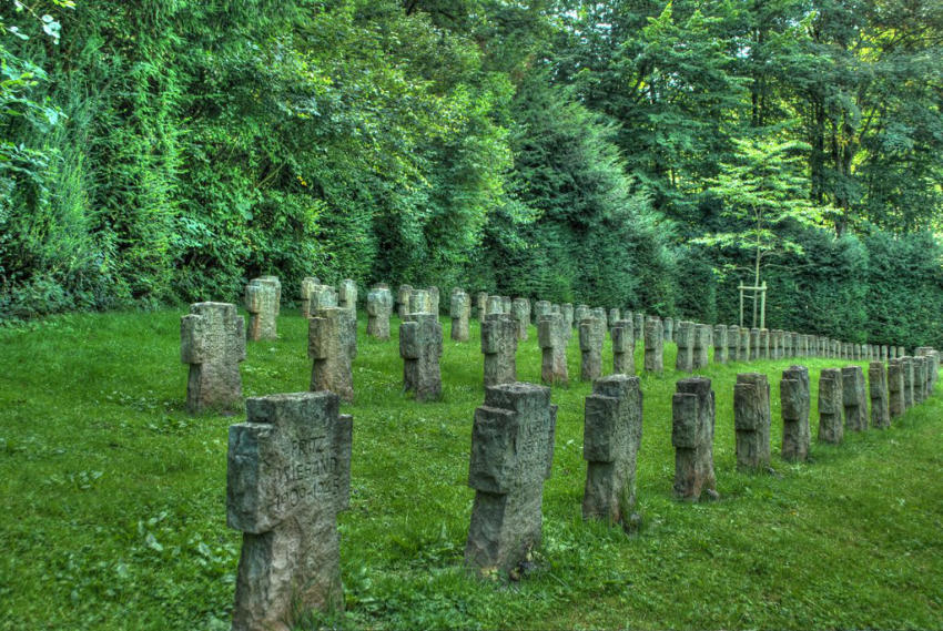 Auf diesem Ehrenfriedhof ruhen 463 Soldaten und Zivilisten, die überwiegend in den letzten Kriegstagen gefallen sind. Die abgelichtete Kapelle mitsamt Grabsteine, befindet sich nur ein Stück weiter, aus diesem Grund habe ich sie mit den Bildern zum Ehrenmal zusammen gepackt.
