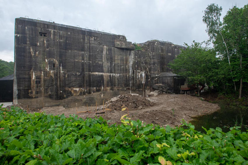 Blockhaus d’Éperlecques wird die Bunkeranlage heute von den Franzosen genannt, der Ursprüngliche Tarnname unter deutscher Besatzung lautete: Kraftwerk Nord West“ (KNW).Im April 1943 wurde bei Éperlecques etwa zehn Kilometer nordwestlich von Saint-Omer ein Waldgebiet durch die Deutschen beschlagnahmt welches vorher von der französischen Marine als unterirdisches Tanklager genutzt wurde.Hier sollte eine Bunkeranlage zur Herstellung und für den Abschuss der V2 Rakete entstehen.Zum Bau dieser Anlage wurde Albert Speer bereits 1942 von Walter Dornbergers gedrängt welcher eine solche Anlage in der Nähe der Kanalküste forderte.Ende Dezember 1942 suchten Offiziere und Ingenieure der Heeresversuchsanstalt Peenemünde nach geeigneten Standorten wobei ihre Wahl auf das Waldstück bei Éperlecques fiel.Im März 1943 wurde die Organisation Todt mit dem Bau der Anlage beauftragt.Unter Einsatz von ca. 3500 französische Gefangenen welche in 12 Stunden Schichten arbeiten mussten wurde mit dem Bau der Anlage begonnen.Schon frühzeitig wussten die Briten über den Bau und den Zweck der Anlage Bescheid.Bereits am 27. August und am 7. September 1943 flogen die Briten erste Bombenangriffe auf die Anlage und am 19. Juni 1944 wurde die Anlage dann im Rahmen der Operation Crossbow durch Luftangriffe schwer beschädigt. Bei diesen Angriff warfen die Briten Tallboy-Bomben ab.Nach diesem Angriff waren die Deutschen dazu gezwungen das Projekt zur Produktion und Abschuss der V2 in Éperlecques aufzugeben und die Fabrik ins nahegelegene La Coupole zu verschieben.In Éperlecques ging nur noch der Ausbau der Anlage zur Herstellung von Flüssigsauerstoff für die V2 weiter und wurde auch in Betrieb genommen.Am 27. Juli 1944 gab es einen weiteren Angriff mit einer Tallboy-Bombe welcher aber keinen Schaden an der Anlage verursachte.Als die Alliierten Truppen immer näher vorrückten demontierten die Deutschen die Anlage und transportierten sie nach Deutschland. Nachdem alles abtransportiert war schalteten die deutschen Truppen die Pumpen ab sodass große Teile des Geländes überschwemmt wurden.Im Sommer 1944 wurde die Gegend von den Alliierten eingenommen. Als Churchill und Eisenhower die Anlage besuchten um sich über den genauen Zweck des “Blockhauses” einen Überblick zu verschaffen waren sie sich über die Funktion nicht mehr sicher und das KNW wurde ab Februar 1945 zum testen von Bomben verwendet.1973 eröffnete ein privates Museum auf dem Gelände und seit 1985 gilt Le Blockhaus d’Éperlecques als historisches Denkmal
