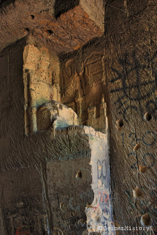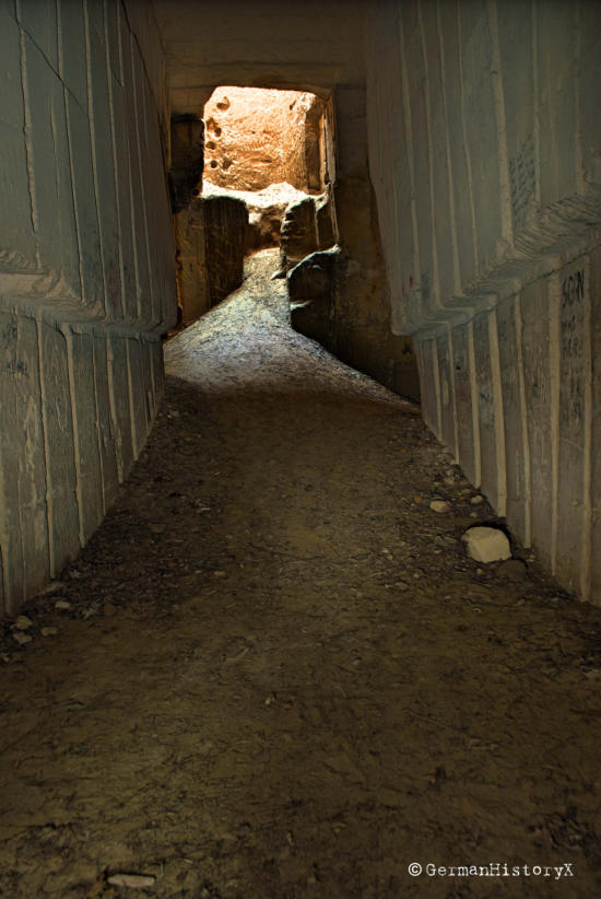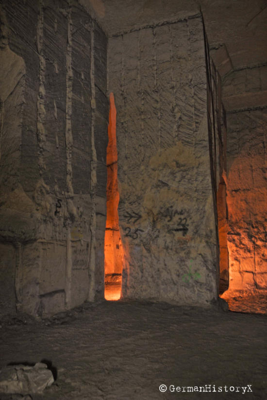 Der Abbau von Mergelstein begann bereits vor 2000 Jahren im Tagebergbau. Ab dem 15. Jahrhundert wurde der Stein auch zum Bau von Häusern & Kirchen benötigt und man begann mit dem Untertage Abbau. Im laufe der Jahre entstand so ein Gangsystem von mehreren 100km in einer Tiefe von 10-30m, wenn man den Plan links betrachtet kann man erkennen wie weit verzweigt die Gänge sind und wie die Ganglänge zustande kommt, alleine auf Belgischer Seite befinden sich 300km Stollengänge.Die Stollenhöhe beträgt ca. 10m. Viele der ehemaligen Eingänge wurden verschlossen aber es gibt auch genug offene. In den Stollen herrscht eine Temperatur von ca. 7Grad und eine gute Bewetterung. In den vielen Jahren sind an den Wänden unzälige Malereien und Schnitzereien entstanden. Ganze Dörfer wurden in den weichen Stein geritzt aber auch Wappen, Symbole oder Figuren, überall findet man in den Gängen malereien aber leider auch sehr viele Grafittis, die einige Malereien zerstört haben. Leider stolpert man auch an vielen Stellen über Berge von Teelichtern und Getränkeverpackungen. Auch Fahrradtouren werden hier unten durchgeführt, was man an den vielen Fahrradspuren erkennen kann. An manchen Stellen gibt es Verbrüche oder herunter gefallenes Gestein. Wir waren mehrere Stunden Untertage aber man merkt dort unten einfach nicht wie die Zeit vergeht und wir werden bestimmt mal wieder einen Familienausflug dorthin unternehmen.