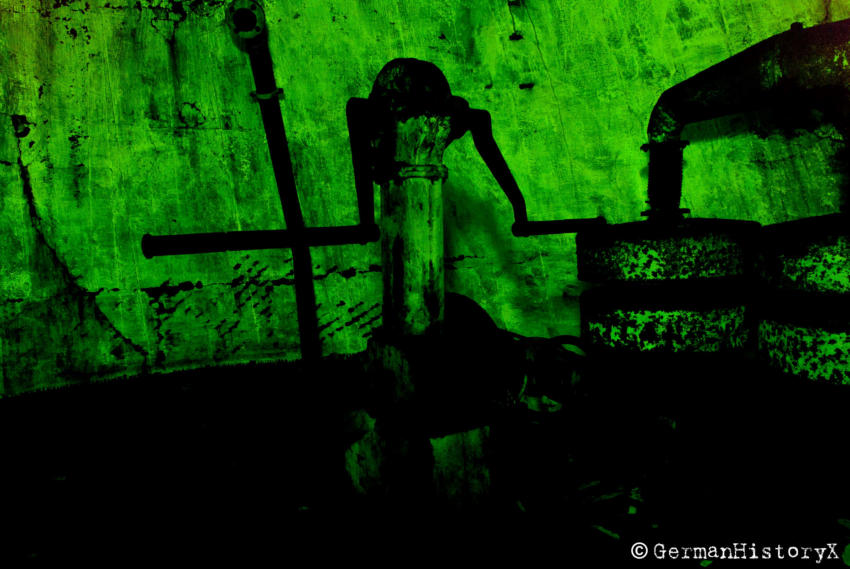 Dieser Winkelturm eines ehemaligen RAW wurde von Innen komplett mit Radiumfarbe (Leuchtfarbe) gestrichen. Er wurde 1941 errichtet und sollte 500 Personen Schutz bieten, es handelt sich hier um einen Winkelturm Typ 1D, einer mit “Sitzteppe” Viel mehr kann ich eigentlich nicht dazu sagen, außer das er in einem guten Zustand, frei von Schmierereien ist.