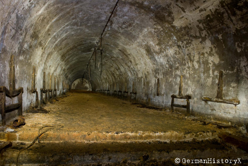 Naja ich gebe zu der Name ist nicht wirklich kreativ aber mir fiel nichts besseres ein und passend ist es auch noch. So nun zur Anlage selbst; der Hauptstollen dürfte so ca.80m lang sein, dazu kommen noch div. Nebengänge, so das man auf einer Gesamt Stollenlänge von villeicht 150m kommt. Gebaut wurde der Luftschutzstollen unter einer Halde, er sollte für 500 Personen Schutz bieten. Auf einigen Bildern kann man gut erkennen das dort wohl öfter das Wasser etwas höher steht, bei unserem Besuch hatten wir Glück das im Bunker gerade kein Wasser stand aber dafür war der Boden fast komplett mit Schlamm bedeckt. An den Wänden kann man noch Teile der alten Sitzbänke erkennen.