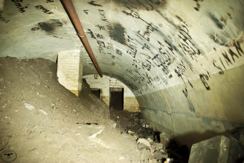 Unser Besuch liegt hier schon etwas zurück, das erste mal 2011 und das zweite mal 2014. In der Zeit hat sich hier doch einiges verändert und mittlerweile wurde der Bunker teilweise abgerissen weil hier neue Rohre verlegt wurden. Mittlerweile dürfte er also nicht mehr zugänglich sein. Der Bunker liegt direkt unter einer Bahnstrecke, diese hat bei den Alliierten Luftangriffen einen Treffer abbekommen und der Bunker wurde im hinteren Teil zerstört. Um die wichtige Bahnstrecke schnell wieder nutzen zu können hat man den Bombenkrater mitsamt Bunker einfach mit Erde aufgefüllt und die Bahnstrecke wieder instand gesetzt. Der Bunker war ein langer Schlauch, zwischendurch mit versetzten Mauern getrennt um eine Druckwelle abzufangen. Bei unserem ersten Besuch waren im gesamten Bunker auf dem Boden die Filter der Volksgasmaske verteilt, geschätzt ca. 100-150 Stück, davon waren bei unserem zweiten Besuch nicht mehr viele übrig, auch hat es in der Zwischenzeit wohl auch gebrannt. Wie viele Menschen ihr Leben lassen mussten als der Bunker getroffen wurde ist leider nicht bekannt.