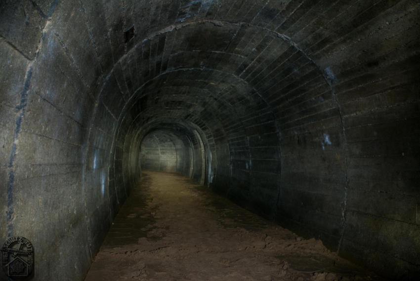 Diese ursprünglich viel größere Anlage wurde in der Mitte aus Standsicherheitsgründen verfüllt,so das wir heute zwei Stollen haben.Dieser hier hat eine Gesamtlänge von ca 100-150 Meter.Der gesamte Stollenboden ist von einer Schlammschicht bedeckt.Durch den gut versteckt liegenden Zugang ist die Anlage bis jetzt frei von Müll & Graffiti geblieben.Man findet hier keine Lufschutzeinbauten mehr, Tüten, Lüftungsanlagen usw wurden schon vor langer Zeit demontiert, so das nur noch der nackte Stollen übrig geblieben ist.