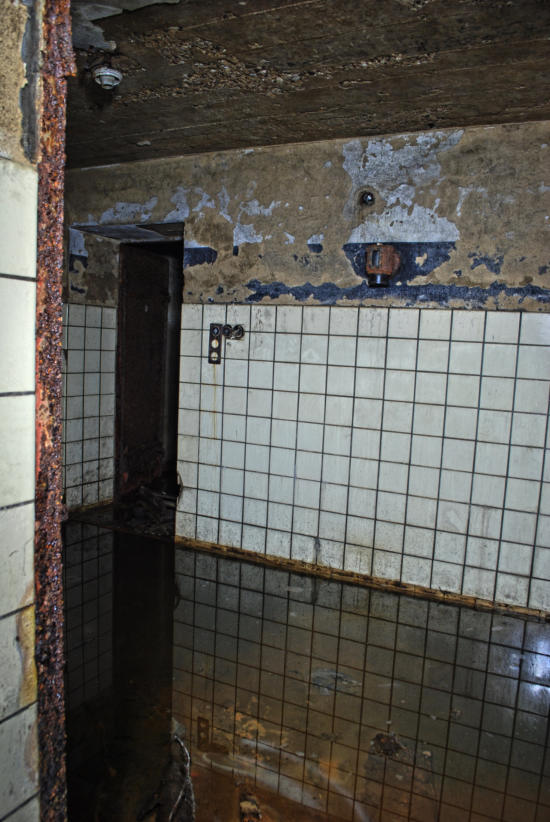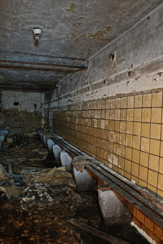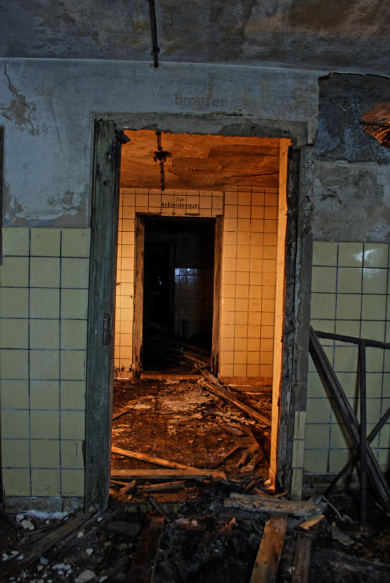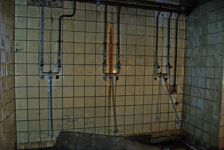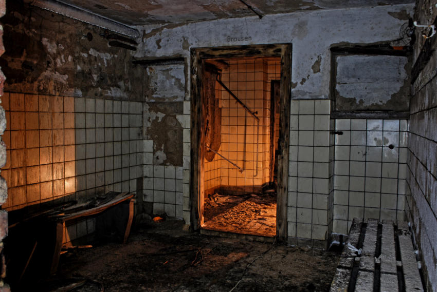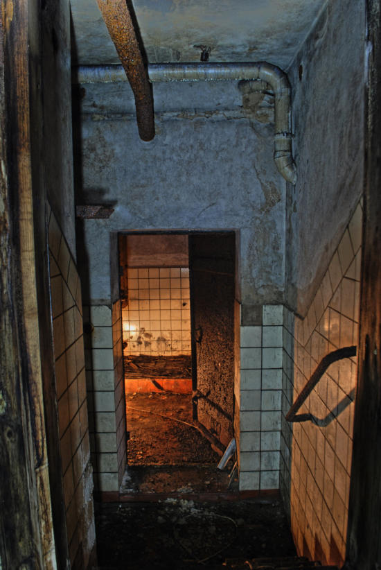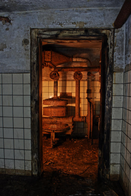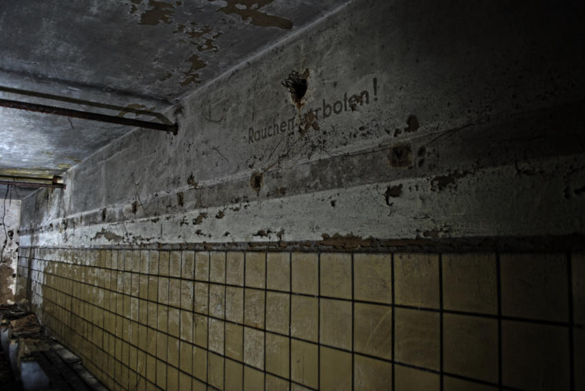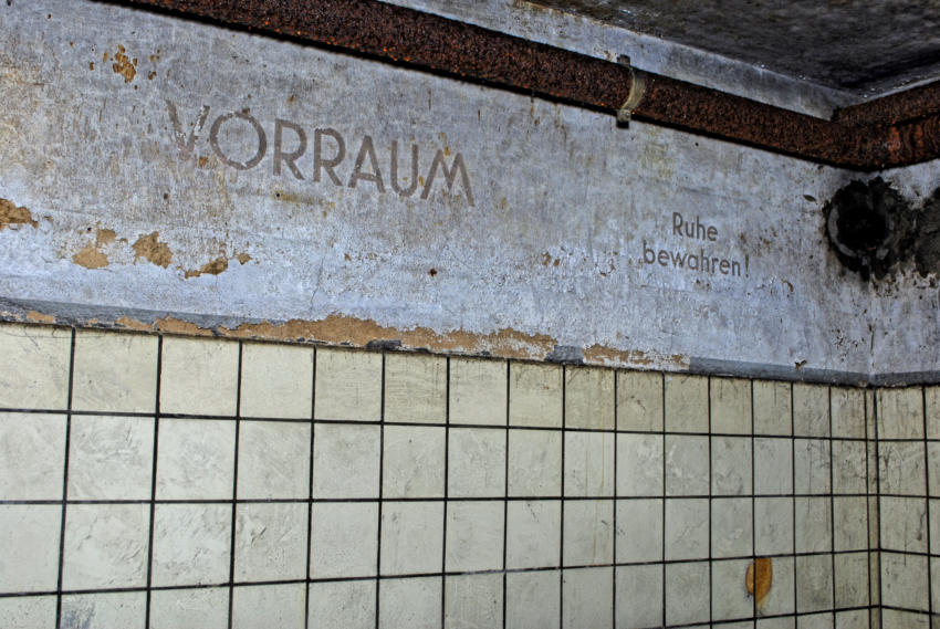 Im August 1940 wurde die Baugenehmigung für diese Rettungsstelle erteilt und im August 1941 war sie fertig gestellt. Die Außenwände sind aus 50cm dicken Beton und die Decke aus Stahlbeton. In den Duschräumen, Aborten & Behandlungszimmern wurden die Wände gefliest, alle anderen Räume erhielten Zementputz. In der Rettungsstelle gab es Heizung, Notstromerzeuger, Brunnen, Gastüren und natürlich eine Be & Entlüftungsanlage. Die Baukosten betrugen rund 80000 RM Es gab zwei Haupteingänge und secht Notausgänge. An Decken und Wänden wurde Nachleuchtende Farbe aufgetragen. Wenn man heute auf dem Marktplatz steht erinnert nichts mehr an die Rettungsstelle unter dem Platz, alle Oberirdischen Bauten wurden beseitigt.