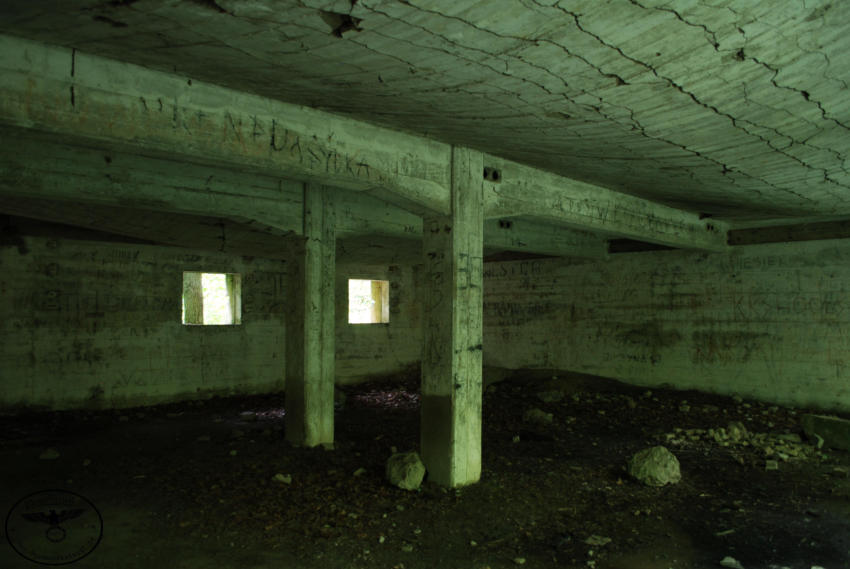 die Bunker. Am 24. Januar 1945 wird die Anlage von der sich zurück ziehenden Wehrmacht gesprengt.