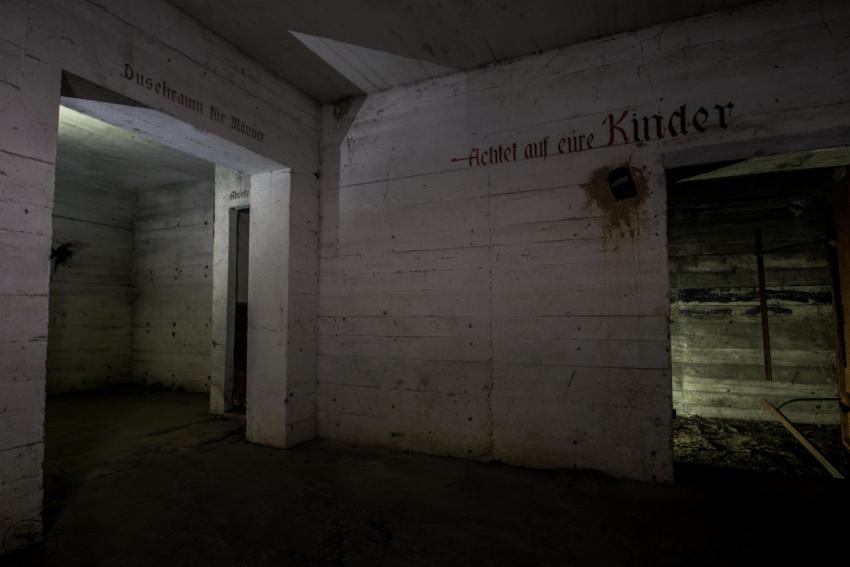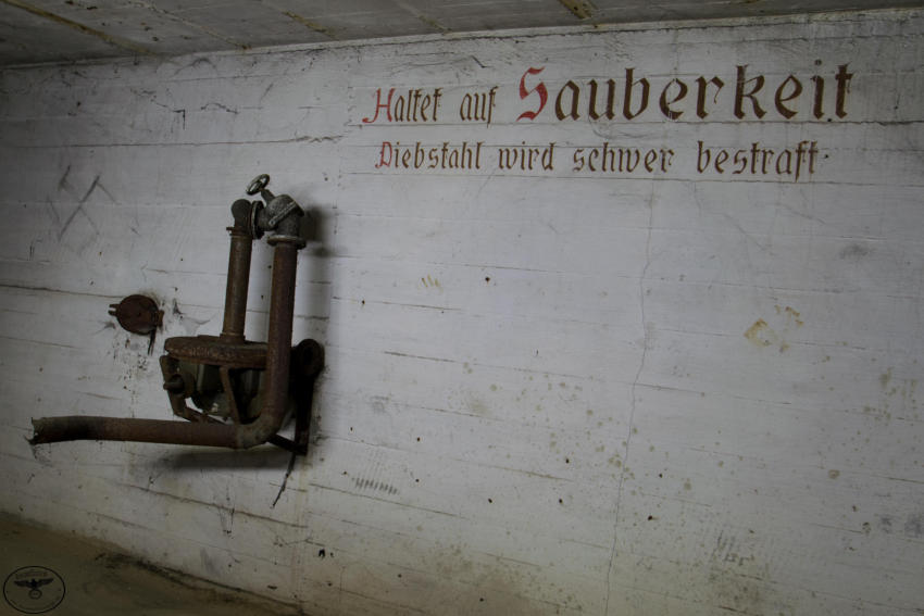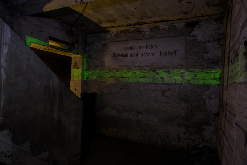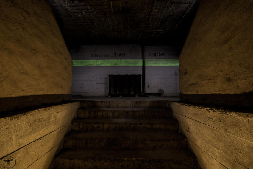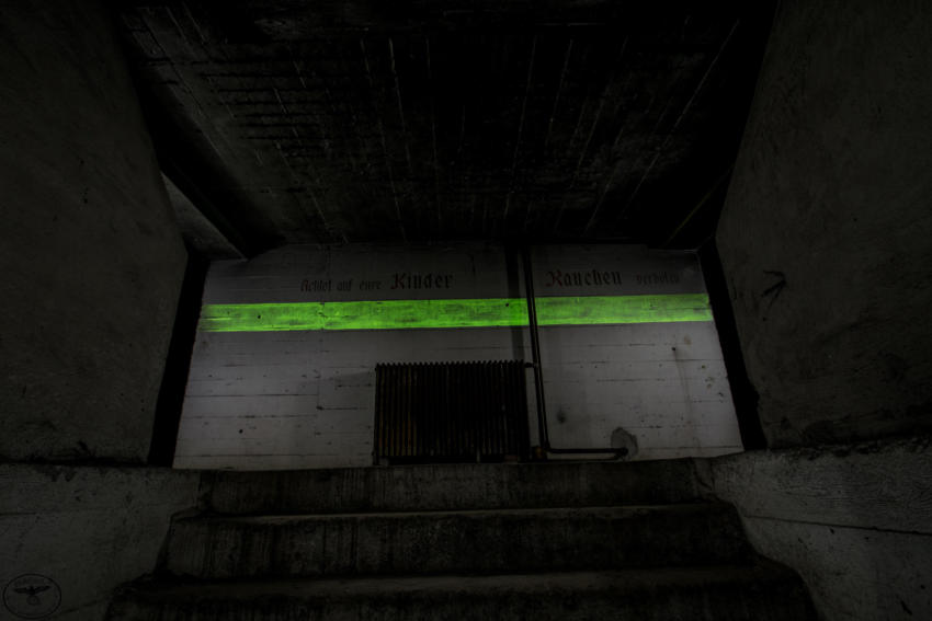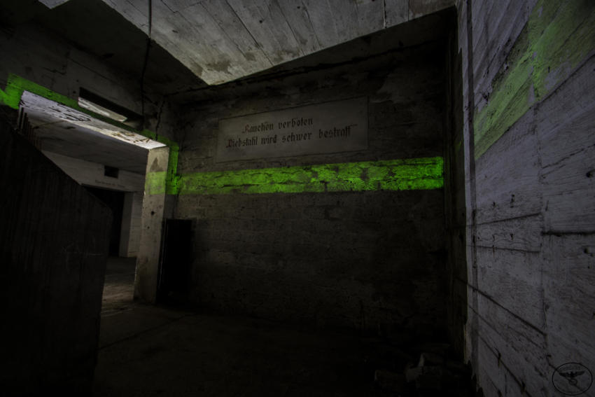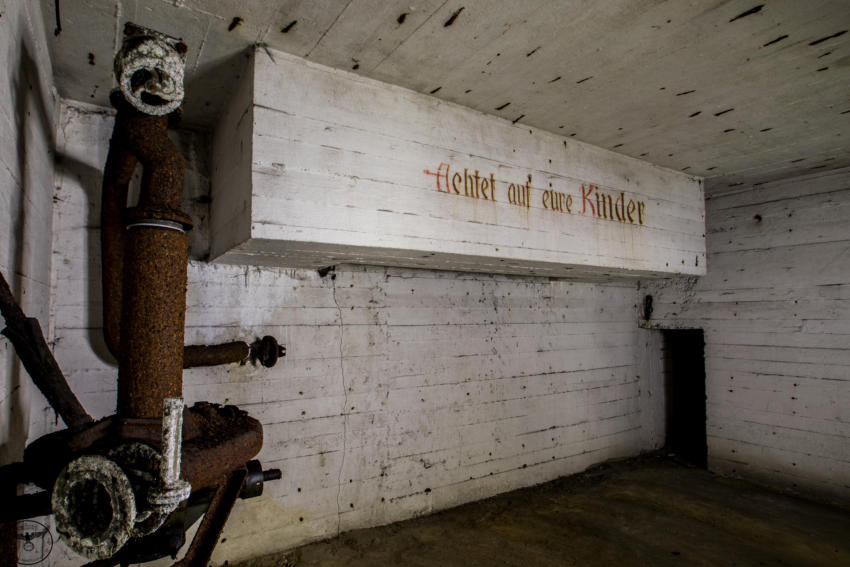 Eigentlich reizen mich Hochbunker nicht so sonderlich aber dieser hat es mir angetan. Die vielen gut erhaltenen Beschriftungen, die Leuchtfarbe und der gesamte Zustand haben was. Der Bunker verfügt über ein Kellergeschoss sowie Erdgeschoss, 1 & 2 Etage. Im Keller war die gesamte Versorgung untergebracht, Wasser & Stromverteilung, Heizanlage die mit Koks betrieben wurde usw. Im Erdgeschoss fanden wir Räume für die Ärztliche Versorgung bzw für die Hebamme, in diesem Raum war die gesamte Decke mit Nachleuchtender Farbe gestrichen so das auch bei einem Stromausfall die Patienten weiter versorgt werden konnten. Des weiteren befanden sich im Erdgeschoss getrennte Duschen und Aborte für Frauen und Männer, ein Raum für den Bunkerverwalter und ein Sanitätsraum. In der ersten und zweiten Etage befand sich dann der eigentliche Luftschutzbereich. In der zweiten Etage war zusätzlich noch die Luftschutzpolizei untergebracht. Auf jeder Etage gab es Handbetriebene Lüfter die auch noch heute vorhanden sind. Sprüche an den Wänden sollten für Ordnung sorgen, so stand dort z.B.: “Achtet auf eure Kinder” “Rauchen Verboten” “Diebstahl wird schwer bestraft” & “Achtet auf Sauberkeit” Ein wirklich schöner und gut erhaltener Hochbunker, ich hoffe das er so erhalten bleibt und geschützt wird!