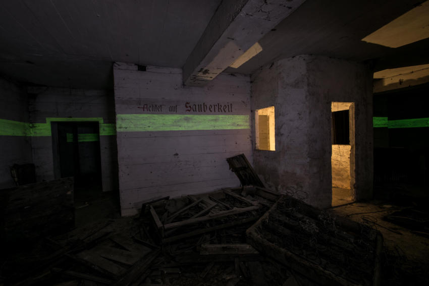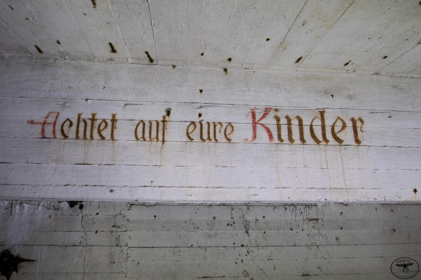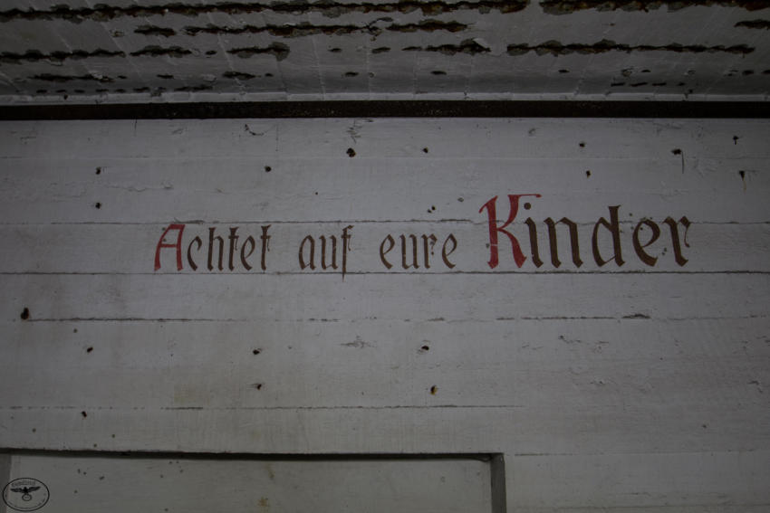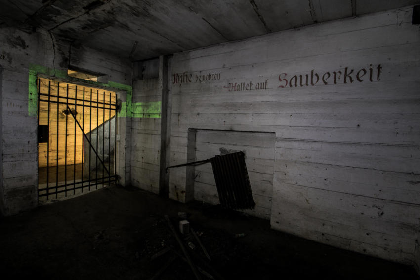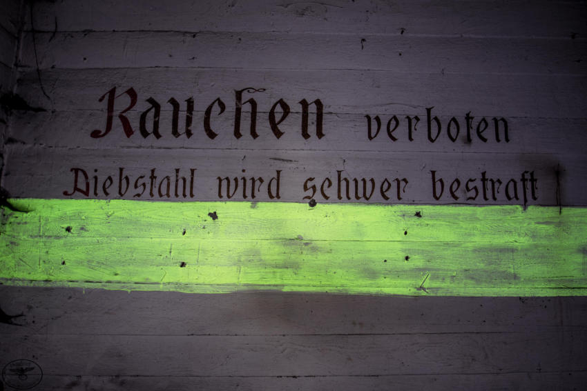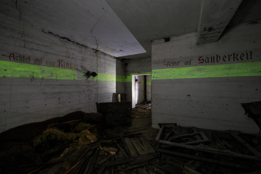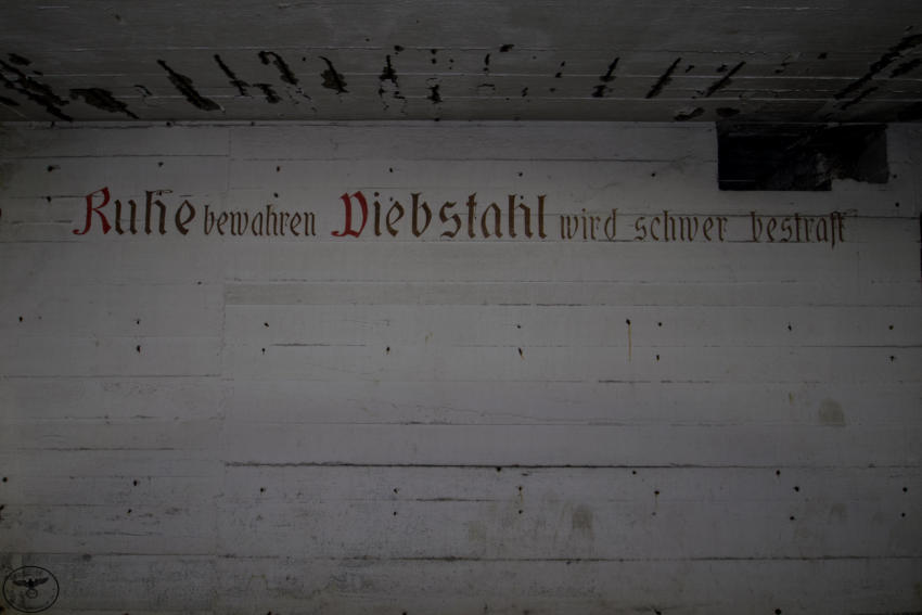 Eigentlich reizen mich Hochbunker nicht so sonderlich aber dieser hat es mir angetan. Die vielen gut erhaltenen Beschriftungen, die Leuchtfarbe und der gesamte Zustand haben was. Der Bunker verfügt über ein Kellergeschoss sowie Erdgeschoss, 1 & 2 Etage. Im Keller war die gesamte Versorgung untergebracht, Wasser & Stromverteilung, Heizanlage die mit Koks betrieben wurde usw. Im Erdgeschoss fanden wir Räume für die Ärztliche Versorgung bzw für die Hebamme, in diesem Raum war die gesamte Decke mit Nachleuchtender Farbe gestrichen so das auch bei einem Stromausfall die Patienten weiter versorgt werden konnten. Des weiteren befanden sich im Erdgeschoss getrennte Duschen und Aborte für Frauen und Männer, ein Raum für den Bunkerverwalter und ein Sanitätsraum. In der ersten und zweiten Etage befand sich dann der eigentliche Luftschutzbereich. In der zweiten Etage war zusätzlich noch die Luftschutzpolizei untergebracht. Auf jeder Etage gab es Handbetriebene Lüfter die auch noch heute vorhanden sind. Sprüche an den Wänden sollten für Ordnung sorgen, so stand dort z.B.: “Achtet auf eure Kinder” “Rauchen Verboten” “Diebstahl wird schwer bestraft” & “Achtet auf Sauberkeit” Ein wirklich schöner und gut erhaltener Hochbunker, ich hoffe das er so erhalten bleibt und geschützt wird!