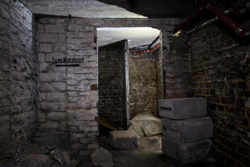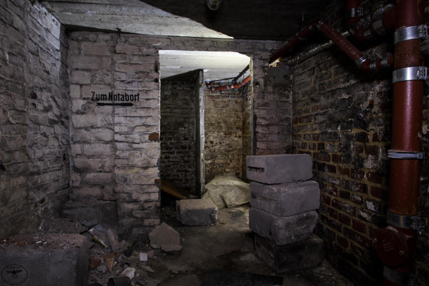 Unter dem 1910 errichteten Gebäude wurde ein Luftschutzkeller für die Schülerinnen & Schüler eingerichtet, der fast den ganzen Keller einnahm. Von der ehemaligen Ausstattung ist heute fast nichts mehr vorhanden, nur noch ein paar Luftschutztüren, Notausgänge und die Beschriftungen aus der damaligen Zeit lassen uns wissen das dieser Keller mal dem Luftschutz gedient hat. Vom Not-Abort bis zur Heizung war alles nötige vorhanden. Mittlerweile steht eine Nachnutzung des Gebäudes fest und die Umbauarbeiten sollen bald beginnen, dann werden wohl auch hier die letzten Zeugen der Vergangenheit verschwinden und nichts erinnert mehr daran das hier einst Kinder und Lehrer bei Fliegeralarm Schutz gesucht haben.