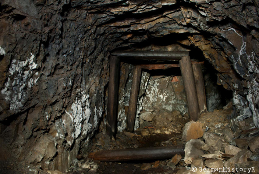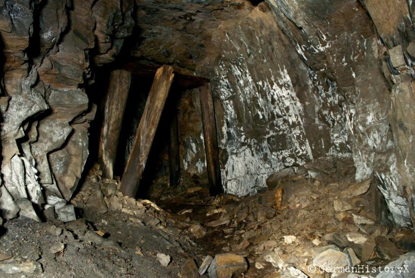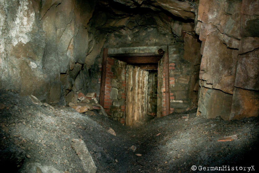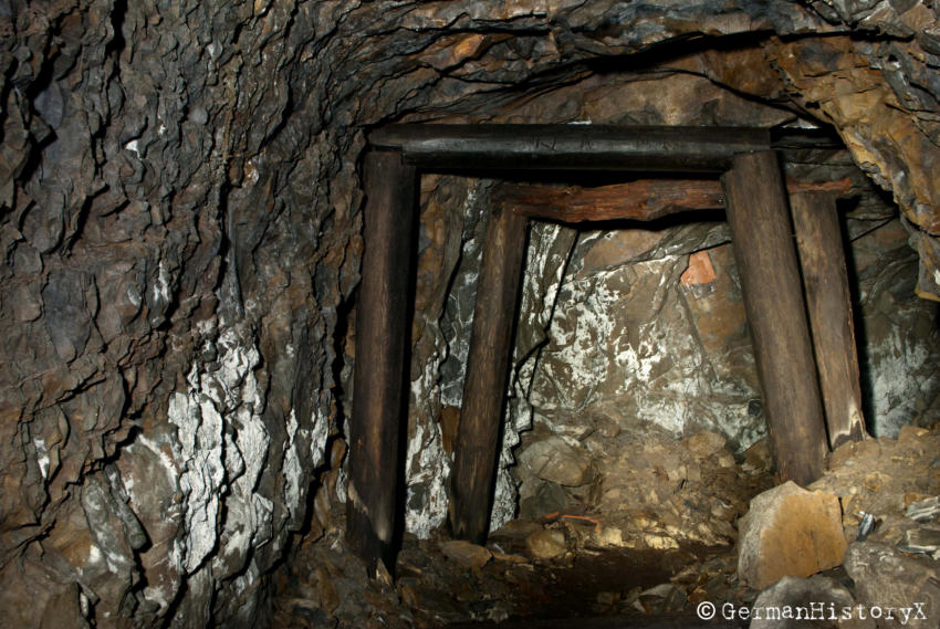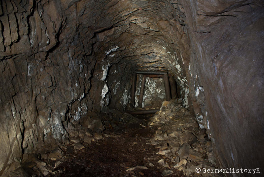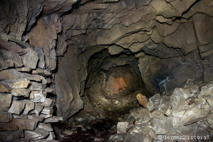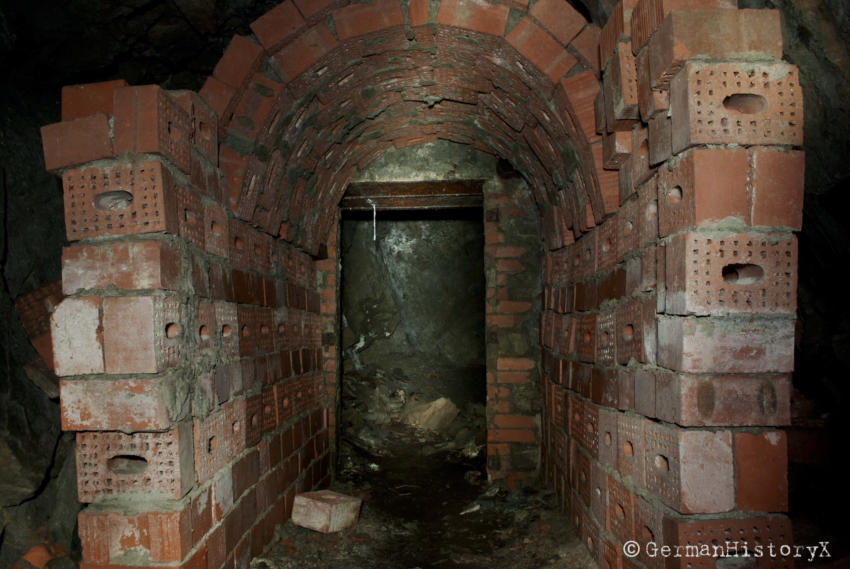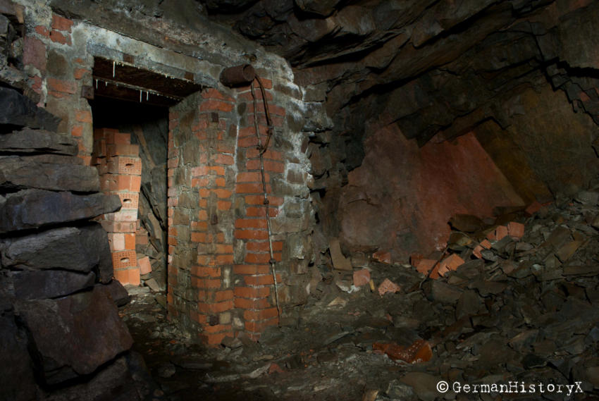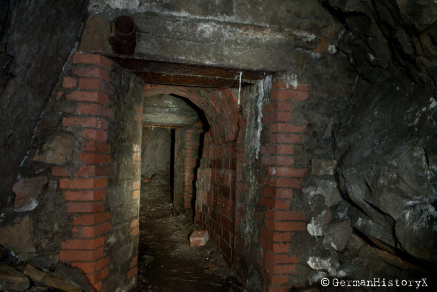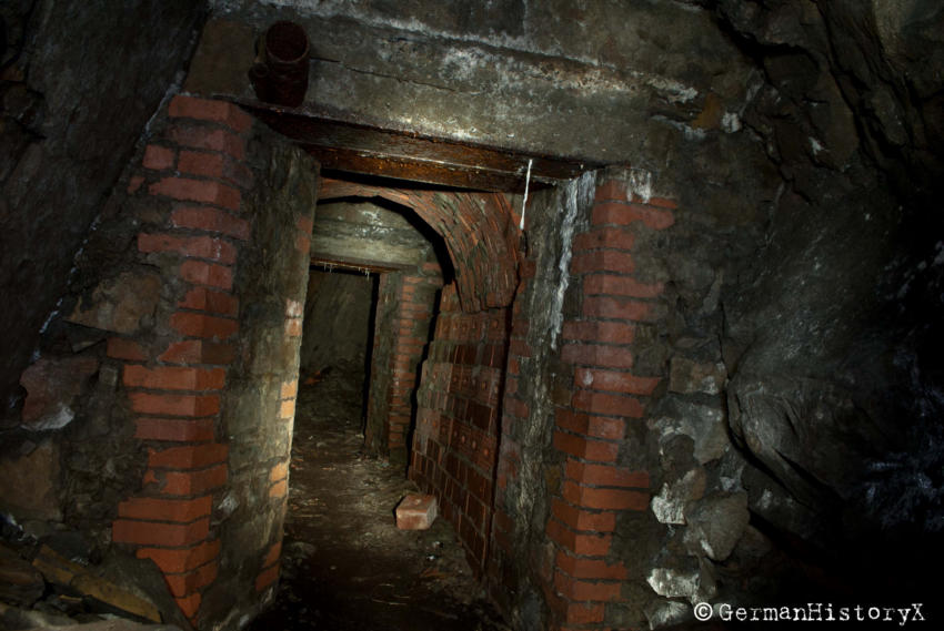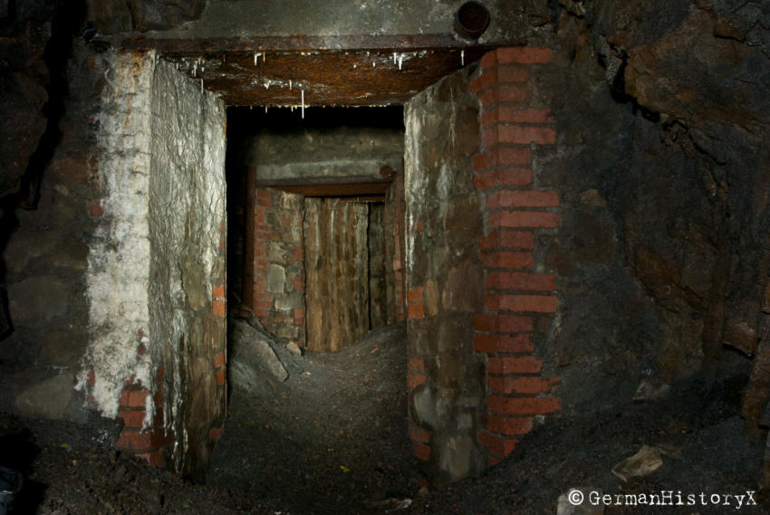 Vor einiger Zeit konnten wir diesen ca. 60m langen Luftschutzstollen besichtigen. Wir vermuten das es sich hier vielleicht um einen alten Bergbaustollen handelt der zum LS-Stollen umgenutzt wurde. An einigen Stellen gibt es einen Ausbau mit Ziegeln, wahrscheinlich zur Stabilisierung, die beiden Eingangsbereiche sind Betoniert. An einer Stelle stehen noch alte Holzstempel. Die Anlage ist zwar nicht sehr groß aber sehenswert. Das Umfeld wo sich dieser Stollen befindet lässt vermuten das hier mal ein Steinbruch war aber leider konnte ich keine Informationen finden die diese Vermutung bestätigen.