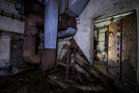 die Decke ist an vielen Stellen runter gekracht und überall liegt vermodertes Holz herum.