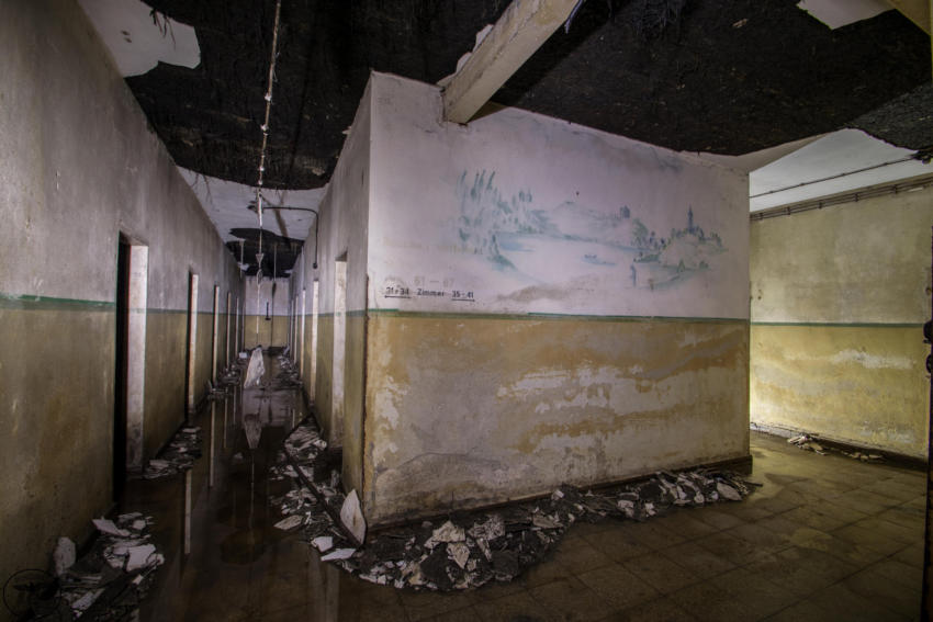 Eindringende Feuchtigkeit macht den Bunker heute schwer zu schaffen, überall bildet sich Schimmel,