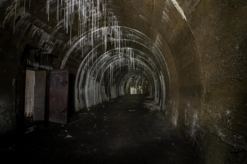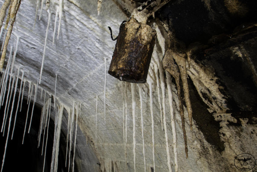 Wahrscheinlich wurde an diesem Luftschutzstollen noch bis Kriegsende gebaut, an vielen Stellen kann man sehen das der Stollen noch weiter voran getrieben werden sollte. Noch heute kann man gut die Bohrlöcher und Meißelspuren erkennen. Die Anlage liegt an einem Hang und hat dadurch eine Überdeckung von 10-30m. Die Stollenlänge schätze ich auf 250-300m. Geplant war der Stollen wohl für 10000 Menschen aber für nur ca 5000 war hier bis Kriegsende Platz. Ein Maschinenraum war auch bereits installiert, vermutlich für Notstrom und Belüftung. Es gab hier unten noch zwei LS-Türen zu bestaunen welche ich in dieser Form noch nicht zu Gesicht bekommen habe. Hier und da lagen diverse Weinflaschen, Medizinflaschen und andere stumme Zeugen der Vergangenheit herum. Schön zu sehen wie sich im laufe der Zeit unzählige Stalagmiten und Stalaktiten gebildet haben. Bleibt nur zu hoffen das diese Anlage nicht auch wieder von unzähligen überrannt wird die sie zumüllen und verschandeln.